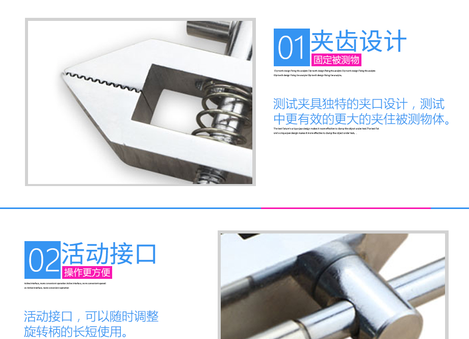 產品型號:JQ-023 品牌:劍 喬 用途:尖齒夾具適用范圍:橡膠、各種線纜、紙、各種電器元件、塑料薄膜等材料的拉力,破壞力測試。