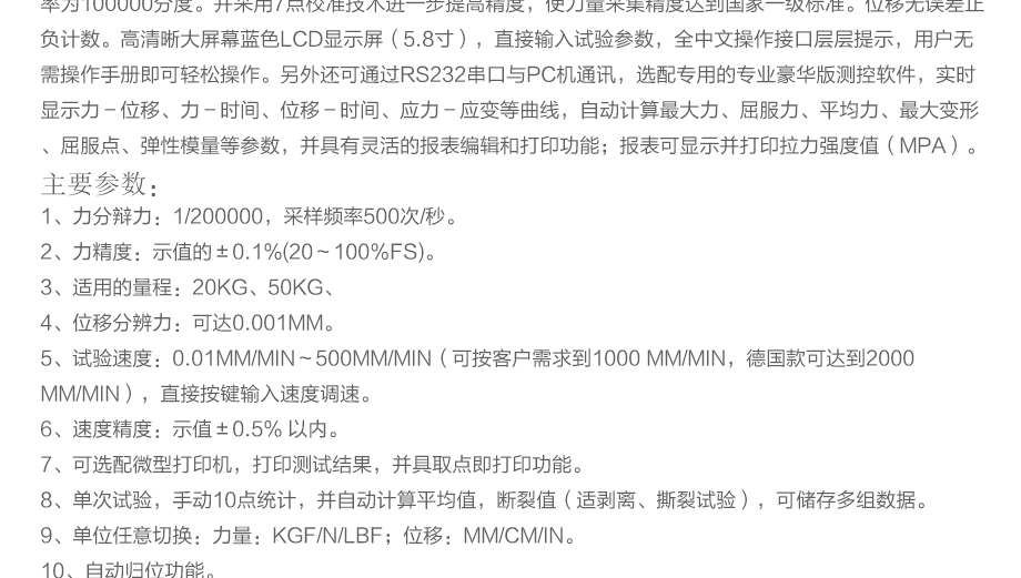 產品型號:JQ-8950 品牌:劍 喬 用途:本系列機廣泛用于各類薄膜、五金、橡膠料、紡織、建材、絕緣體、電線、電纜、端子等各類材料。測試其拉伸、撕裂、穿刺、剝離、抗壓、彎曲、抗剪切、定荷重、定位移、三點抗折